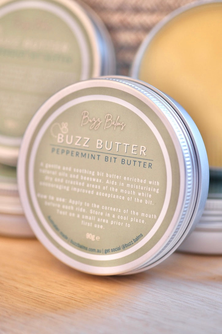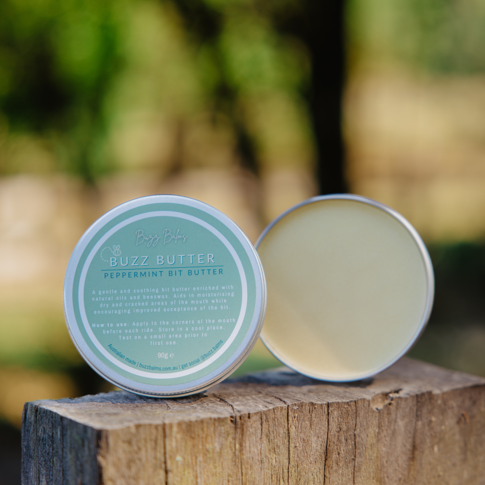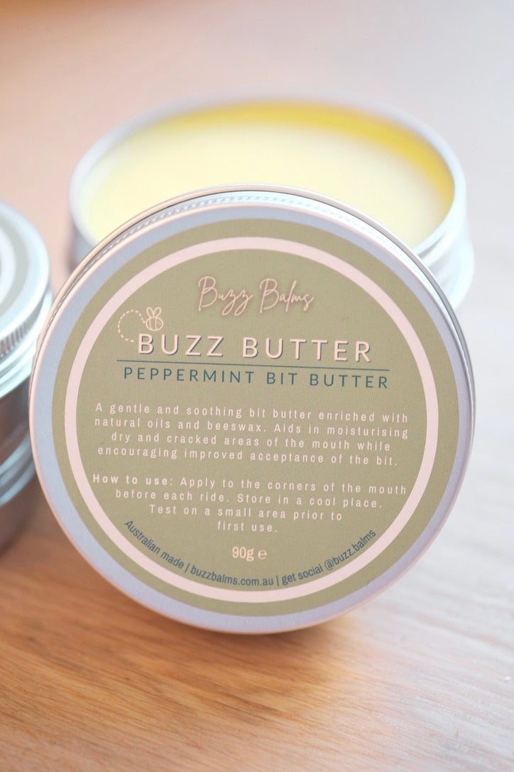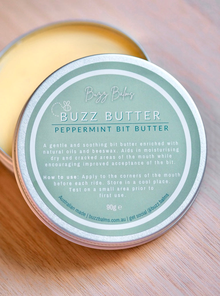 This peppermint flavoured bit butter is 100% natural, handmade from a nourishing blend of beeswax, cocoa butter, mango butter, coconut oil and olive oil. Moisturise cracked, calloused and dry lips while improving bit acceptance. Trust us when we say this Buzz Butter smells good enough to apply as a lip balm - we don't blame you if you do! Best of all our Bit Butter is Australian made, palm oil free and nasties free.
