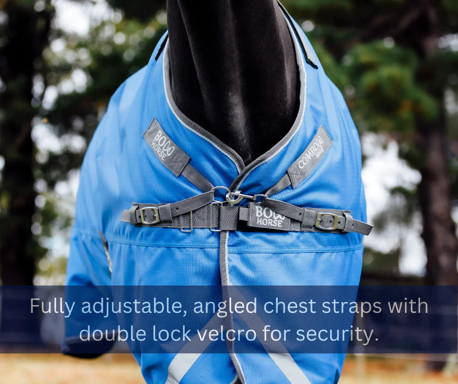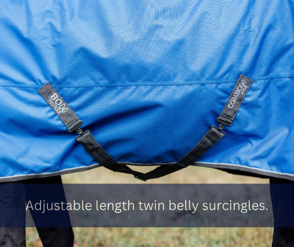 The Bow Horse™ Combo outer rug combines 1200D ripstop waterproof, breathable polyester fabric with an anti-rub lining.