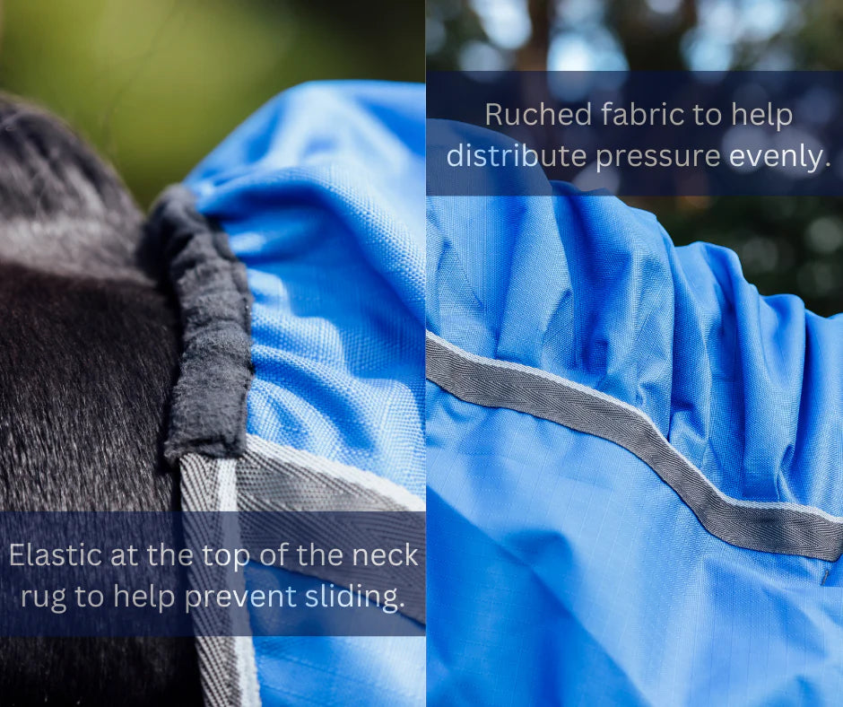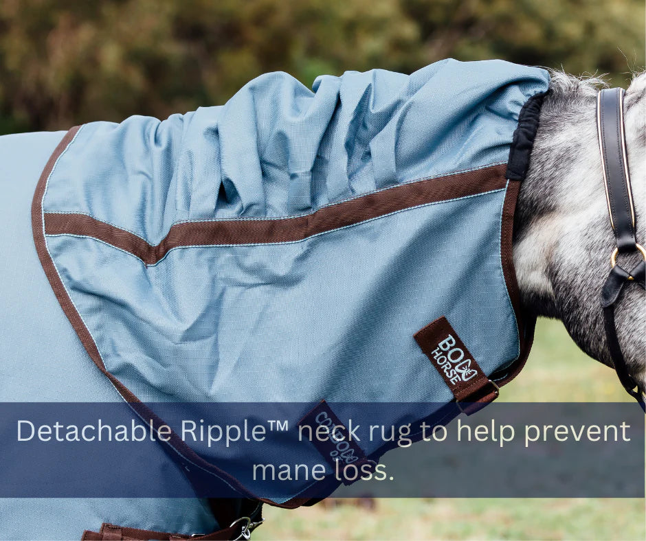 A detachable neck rug is included and features our Ripple™ neck technology, designed to help prevent mane loss by reducing pressure on the mane, increasing air circulation and reducing the chance of over-heating hair follicles.