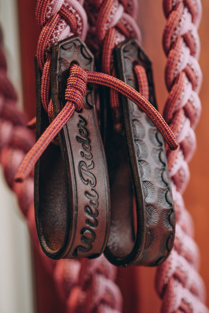 - Comes equipped with hand made branded, hand-tooled and hand-painted leather water ties, allowing you to replace any clips you attach, or simply use them without clips looped onto your horse's bit.