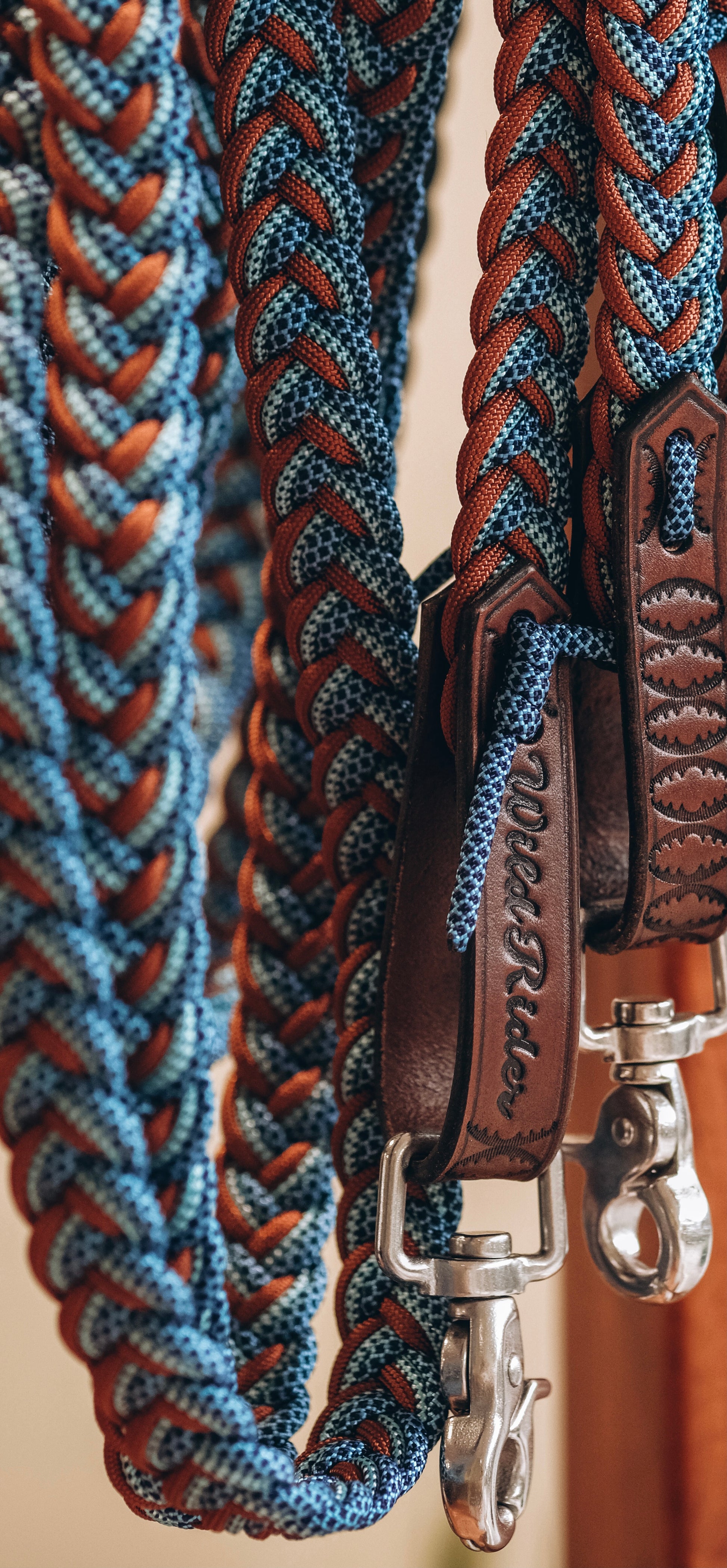 - Comes equipped with hand made branded, hand-tooled and hand-painted leather water ties, allowing you to replace any clips you attach, or simply use them without clips looped onto your horse's bit.