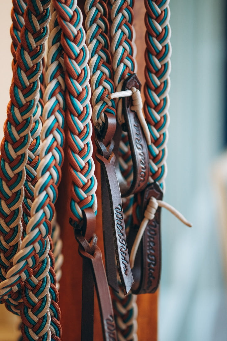 - Comes equipped with hand made branded, hand-tooled and hand-painted leather water ties, allowing you to replace any clips you attach, or simply use them without clips looped onto your horse's bit.