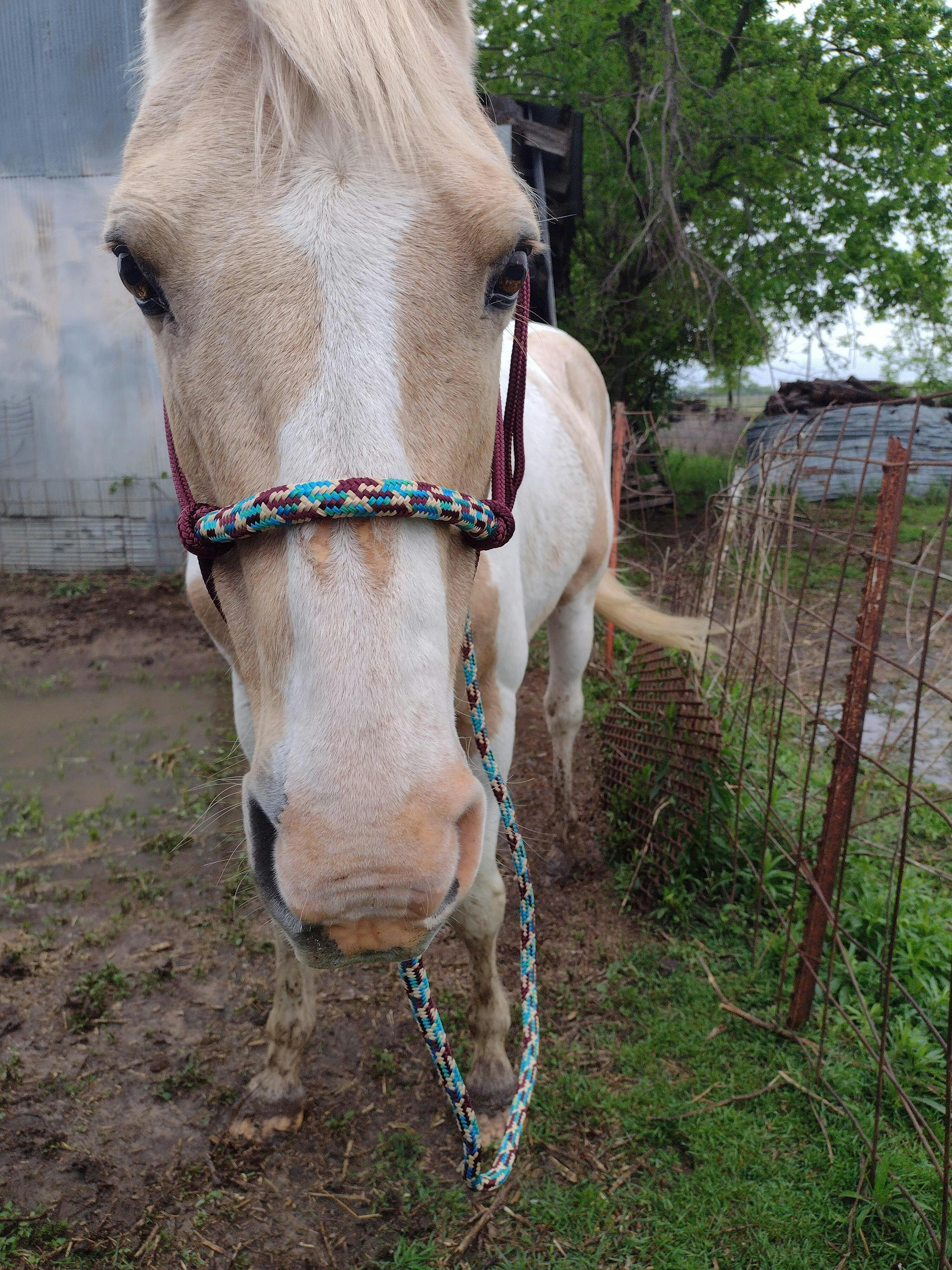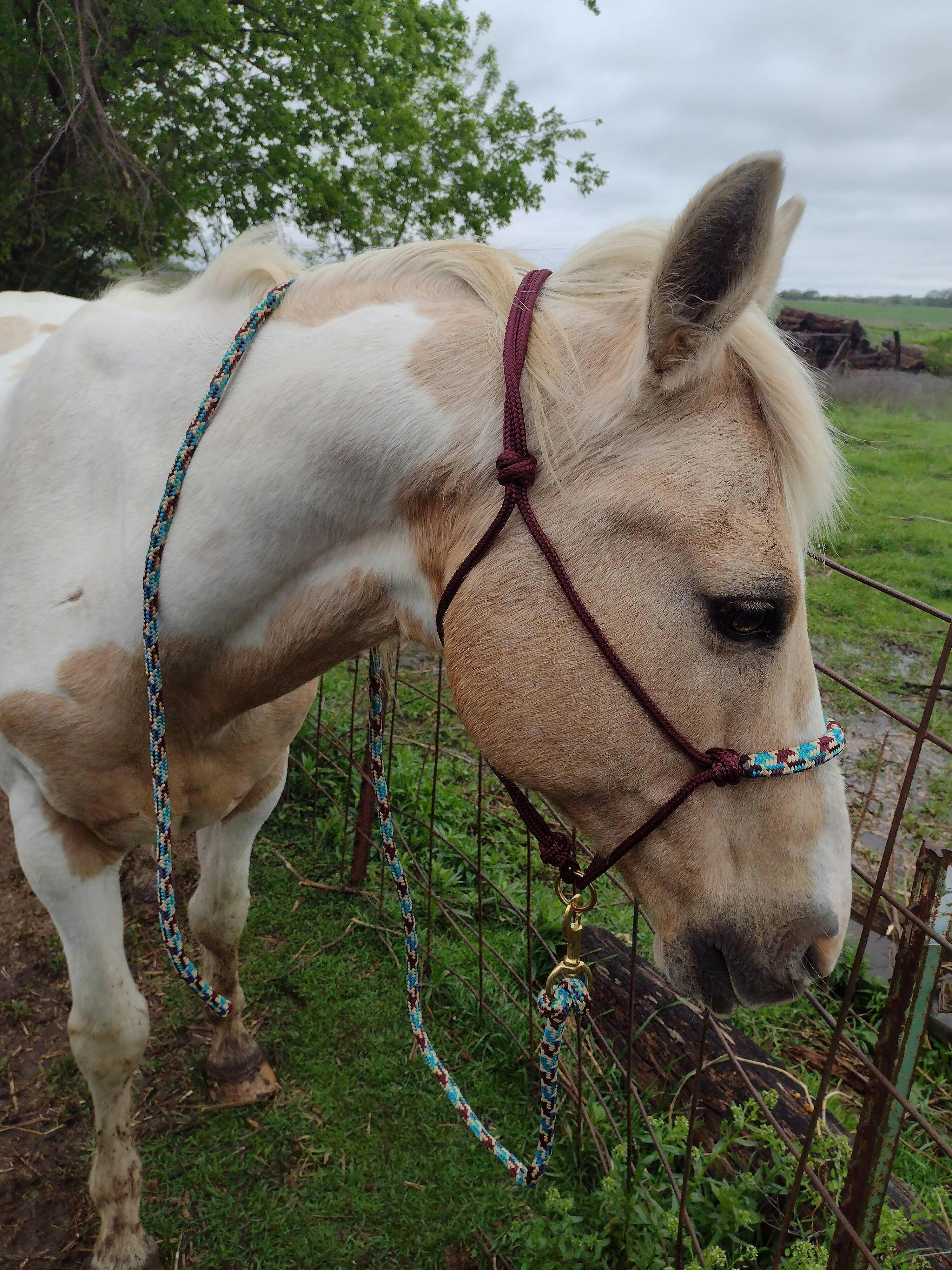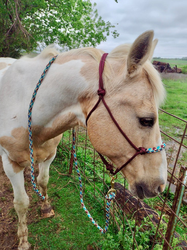 The halter and lead rope are so pretty. It turned out better than I expected. Shipping was pretty fast for international. My gelding looks pretty sharp in his halter.