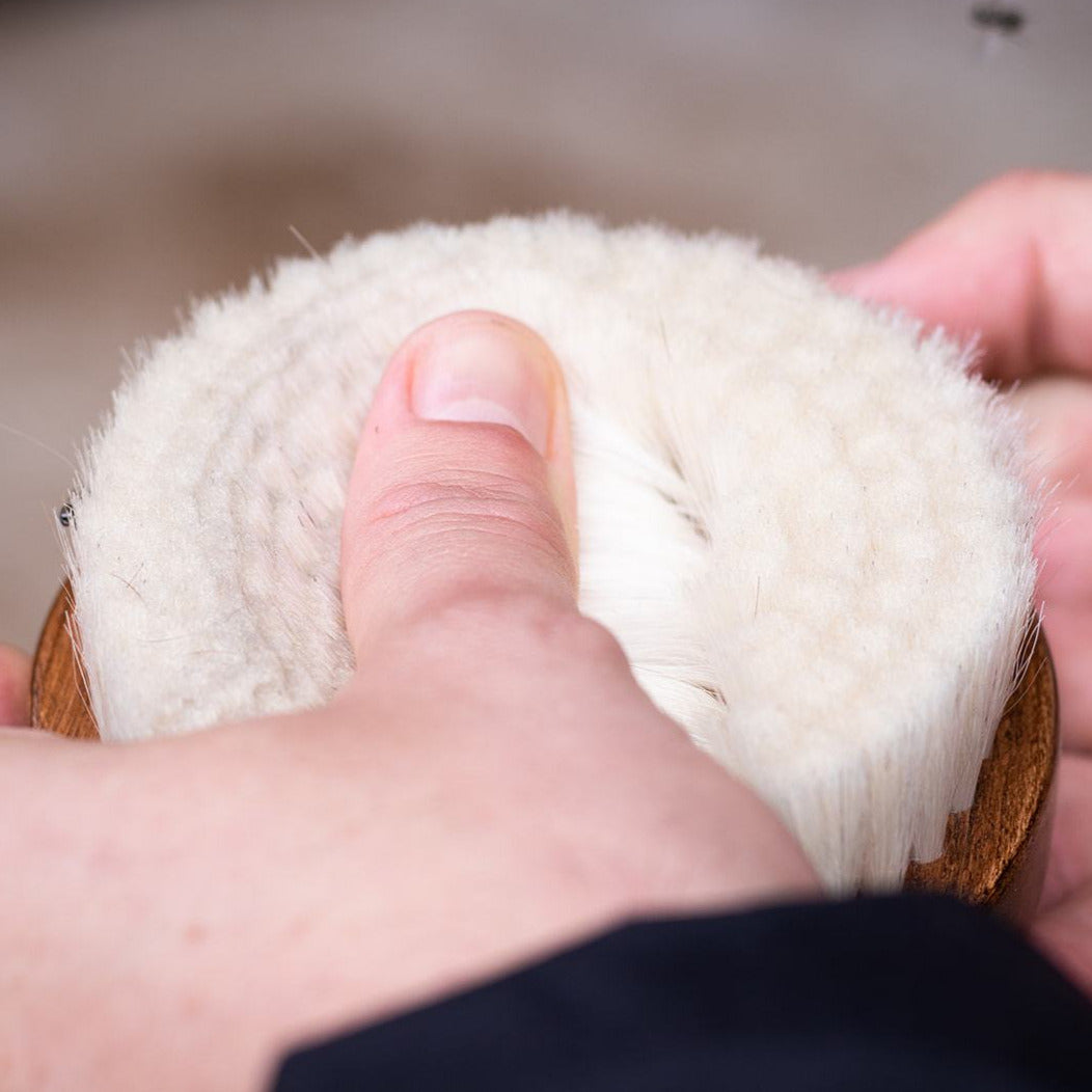 Our Hairy Pony Face Brush is handmade with high-quality beechwood & pure wool bristles. Incredibly soft & decadent, this brush is perfect for brushing sensitive areas such as the face. The padded leather handle adds softness & our signature gold details give a luxurious finish to match your collection.