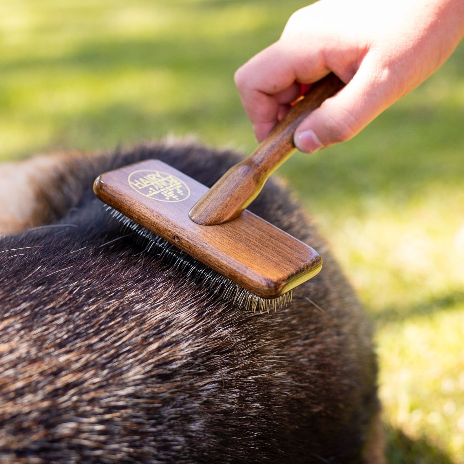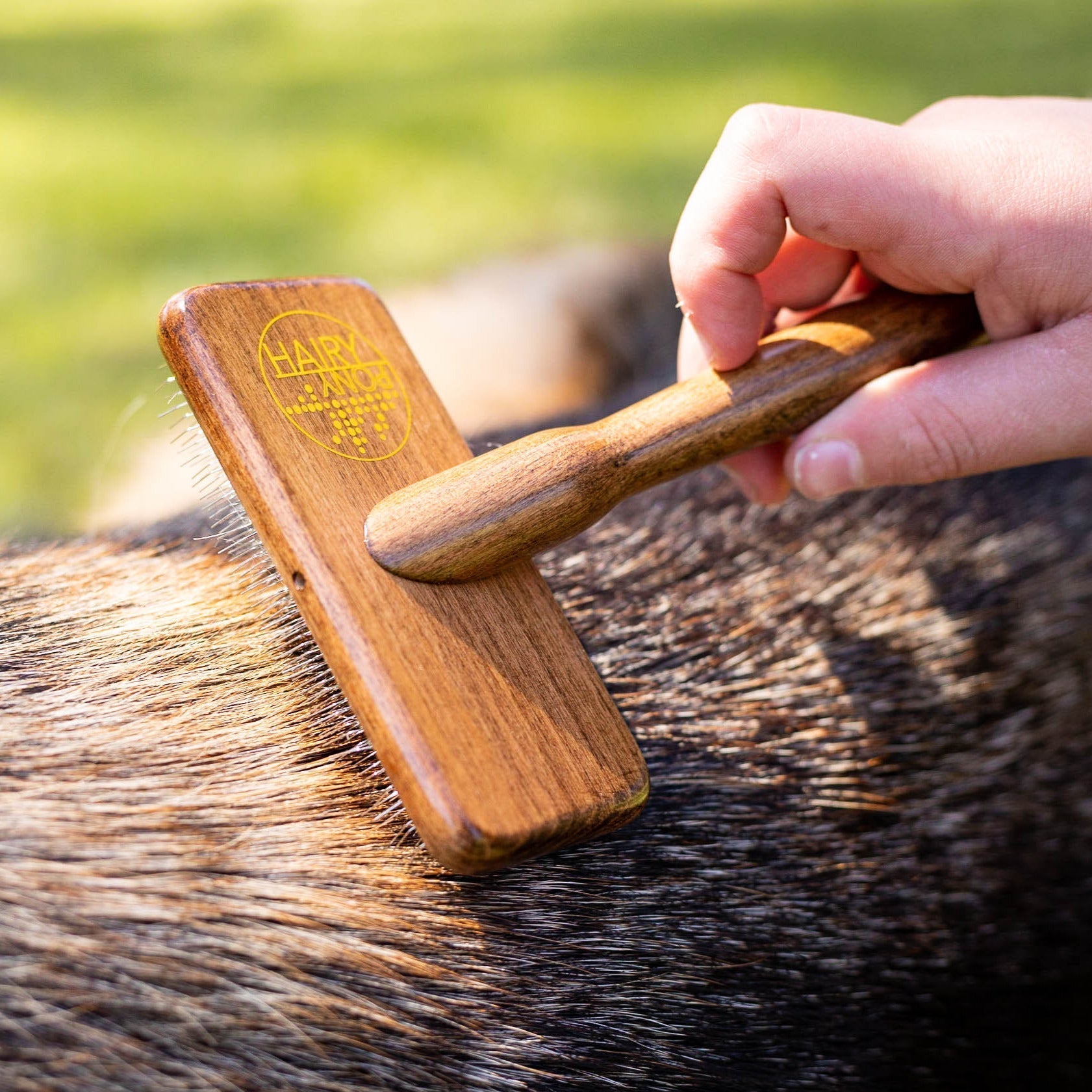 Our HAIRY POOCH DESHEDDING BRUSH features a luxurious Beechwood handle, with fine metal bristles - perfect for removing excess shedding hair in single & double coated dogs.