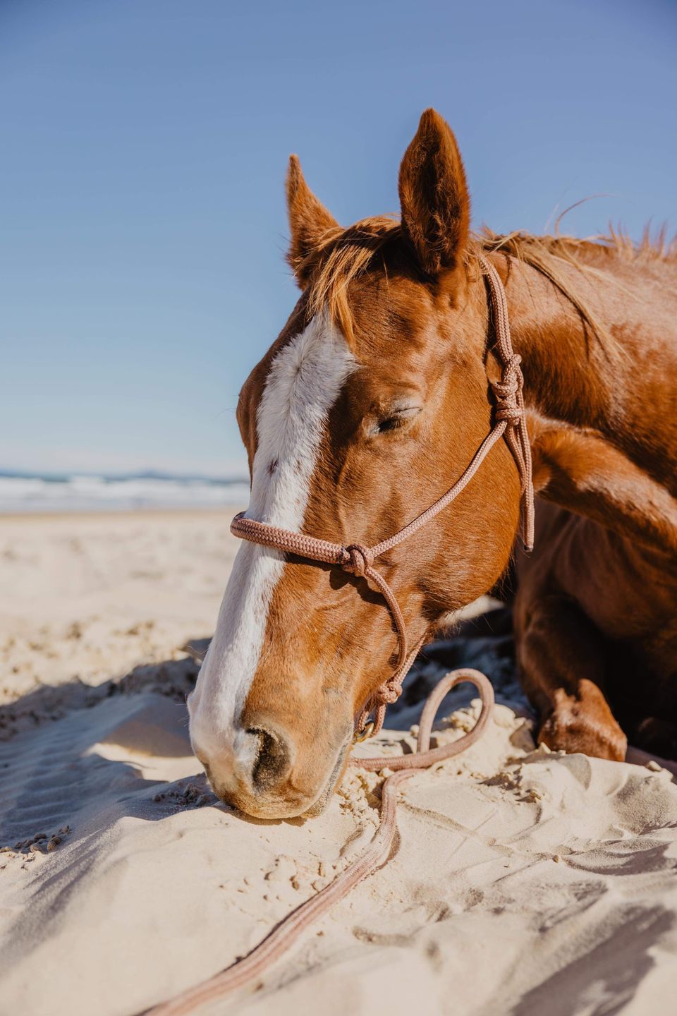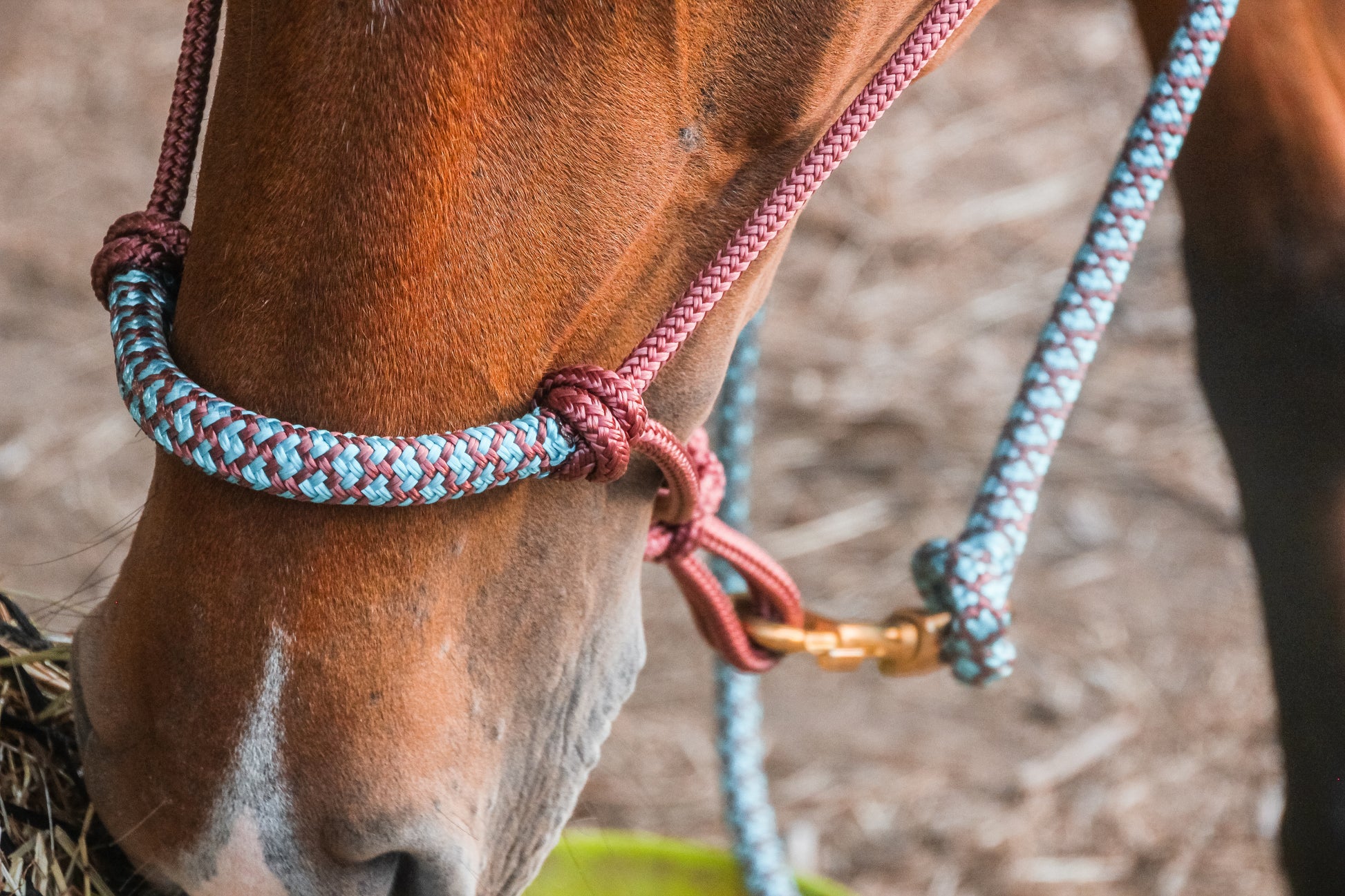 Always supervise a horse wearing a rope halter. The soft, strong rope is not designed to break if the horse gets tangled.